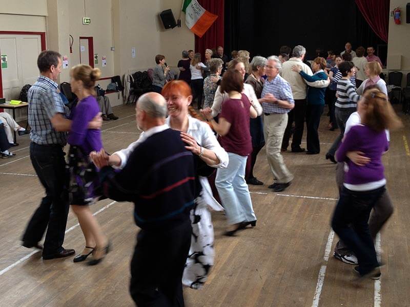 Mélange de set dancing (4 couples en quadrille) et de danses de ceili (collectif)
